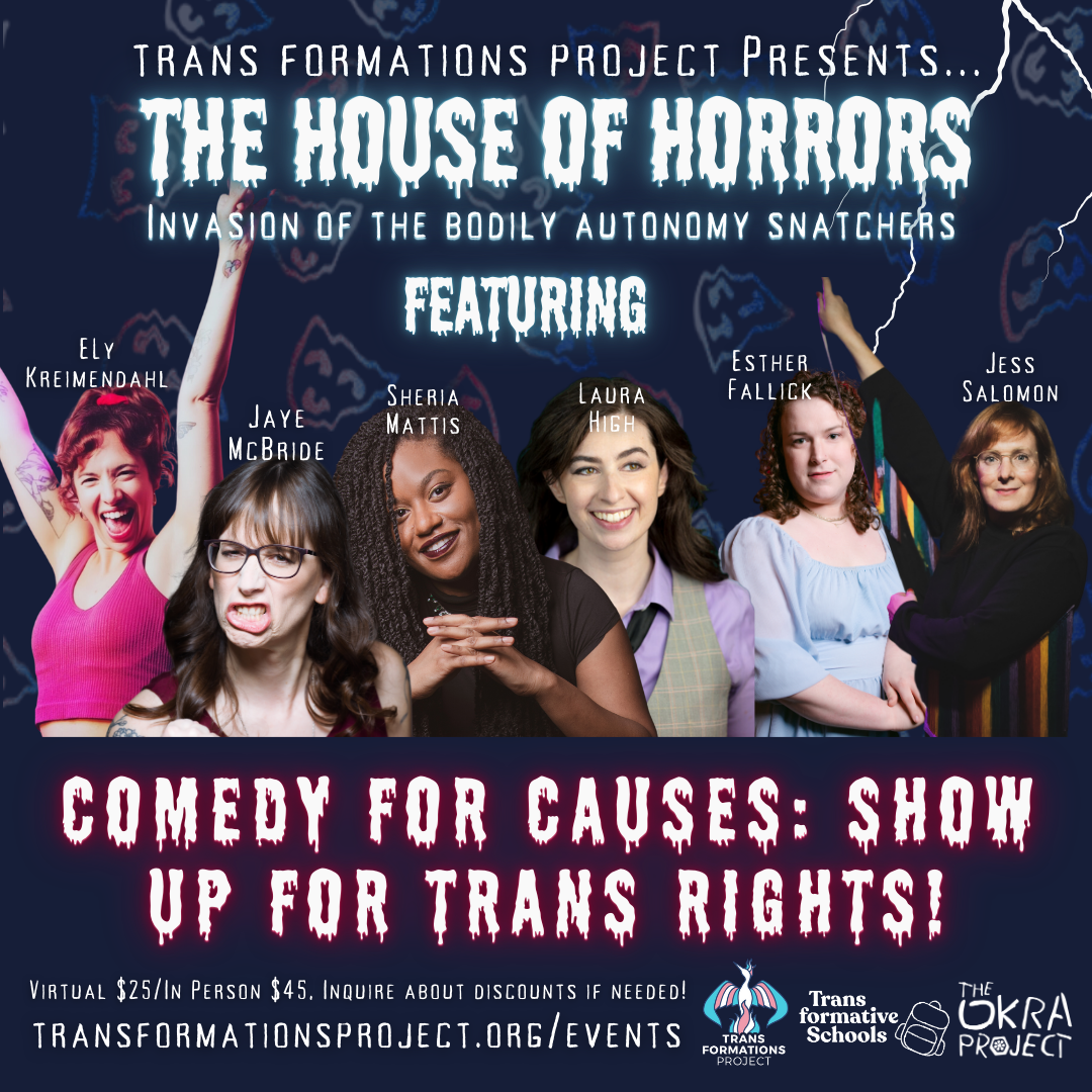 Your opportunity to support trans rights is here! SHOW UP FOR TRANS RIGHTS! Laughter can be a powerful force for change. Come out for a night of fun, laughter, and advocacy in this joint beneficiary fundraiser comedy show. Let your laughter pave the way to progress! We hope to have you join us on Wednesday, Oct 25th, at 9pm ET!